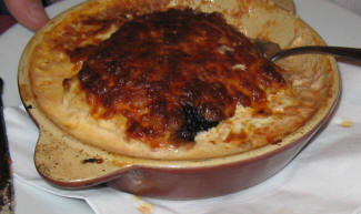 Dumped off at Gare de Montparnasse, from which we embarked, the trick was to find our way to 201 Rue de Paris. The question was which piece of the Rue de Paris? There was one in the southeast and another in the northwest. So I walk up to the only stationary taxi I see and I inquire in my best (well, all right, only) French whether he can take us to our destination. He grumbles something at me, which I suspect I am better off not knowing its exact meaning, and indicates he will drive us there. Not quite sure I want him to, but unwilling to appear ungracious, we haul our luggage over and get it into the trunk, and away we speed through the Paris traffic. It's worse than the L.I.E. the rush hour before a long weekend. Incredibly, when we arrive at our destination, the driver slides right past it, going another few blocks until I correct him, saying I was sure we had passed the hotel. "Oh, no, madame!" he says to me in French. "This place here, where I am stopping, this is the place you want. There is no such address as the one you gave me. This is the only hotel in these parts. Your directions are mistaken." Well, I knew darned well he was spouting hogwash-- I'd seen the bloody sign for our hotel the moment we got off the bypass loop, and he couldn't fool me thinking that I didn't understand what he was saying. Once the bags were out of the car, (three out of six of them unloaded upside-down) I paid him, took the change and carped about the sad experience of someone trying to take advantage of a stranger. James, giving the driver the benefit of the doubt, suggested we approach the desk inside the complex he'd indicated would be "the only hotel in these parts". A very mild woman attended us, and kindly asked if we had a reservation. "Would you spell that name again?" "No, we have nothing like that. The place you want is down the street a few blocks." It was all I could do to keep a civil tongue in my head. So we yanked our luggage out of that building, and trundled down the street about four blocks to the entrance of the hotel where our reservation actually awaited us. By this time I am aching, tired, hungry, and very much out of sorts; even a dragon would not have wanted to mess with me. We took the elevator to the third floor (actually the fourth, the way the French count their floors), and found a delightful room with an airy window, a folding platform dining table, a desk, kitchen cupboards, refrigerator, sink, and sundry cooking utensils, and even a towel warmer in the lavatory! Having settled in a bit, we left for a reconnoitering walk and a bite to eat. We ended up at a neighborhood eatery, what you might find on a corner in Queens, New York. We chose seats near the door, and the server/cook/owner attended us through the meal. These scallops were the first I'd had with their orange thingies attached! They were also among the best-tasting ones I'd ever eaten. James ordered and enjoyed his lasagna.