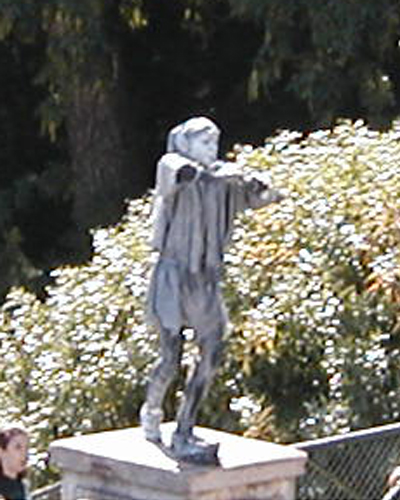 stairs from the church, stood on a pedestal costumed and maquillaged