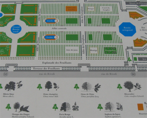 Tuilleries gardens in the morning sunshine from the Louvre shops to Cleopatra's