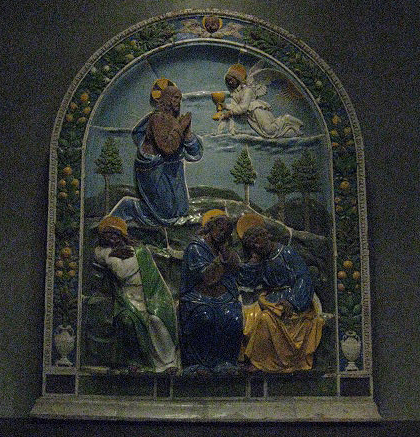 A plaque of Jesus at Gethsemane; one of the many sculptures.
