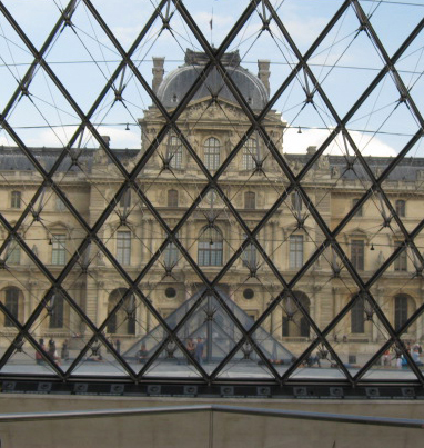 The Louvre Palace from the underside of one of the new pyramids.