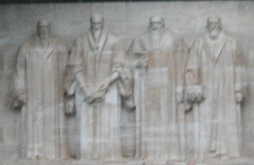 were perched bas-reliefs of Genevans Calvin, Farel, de Beza, and Knox,